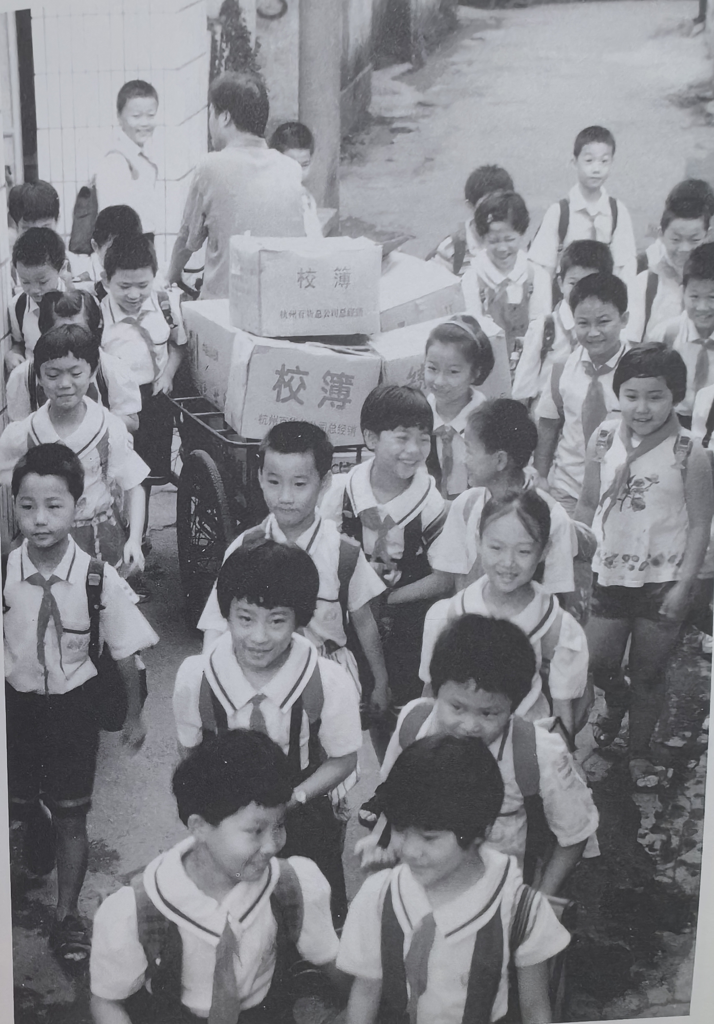 1987年,宗庆后当上杭州上城区校办企业经销部的经理,那是娃哈哈的起点。图为宗庆后踩着三轮车送校簿的背影
