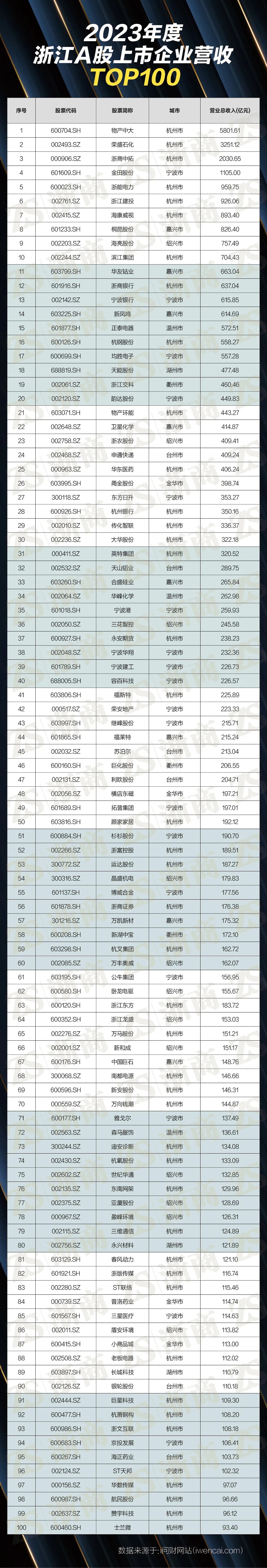 浙江A股上市公司年报季收官:2023年总营收超5万亿 “百亿”军团又扩容