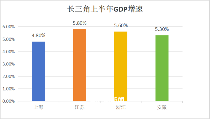 长三角上半年GDP突破15万亿元 江苏、浙江增速领跑三省一市