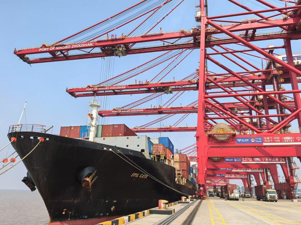 图为海关关员对首航船货物装卸作业开展现场监管。杭州海关供图