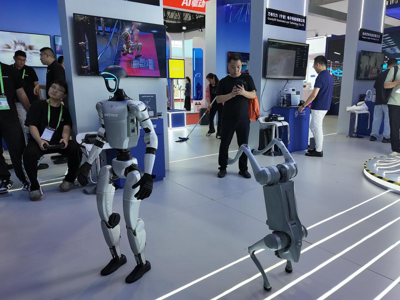 最近,刚拿到全球知识产权领域最高荣誉——WIPO全球奖的杭州宇树科技股份有限公司,也来到了现场。他们带来的人形机器人G1和四足机器人Go2,迎来一波波参观者。公司市场拓展经理张涵之告诉记者,据第三方机构统计,2024年他们的四足机器狗市占率已达到60%以上,他们希望通过展会了解更多市场信息,吸引更多科研院所一起共创,从而开拓更多机器人落地场景。