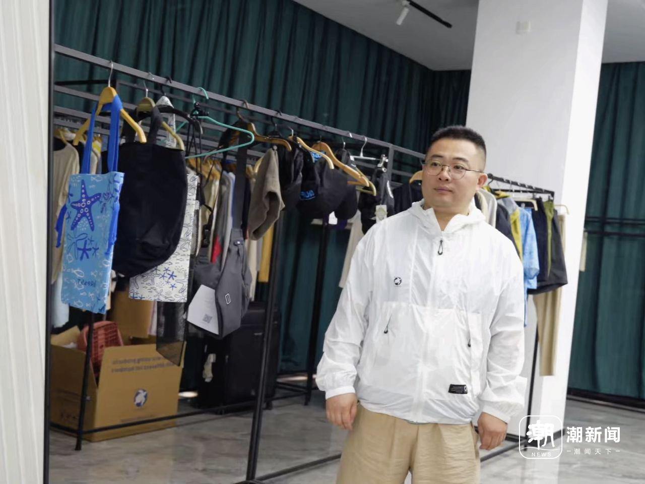 英瑞特公司联合创始人、研发总监胡鹏岩身着再生材料制成的冲锋衣 记者 邹宸 摄
