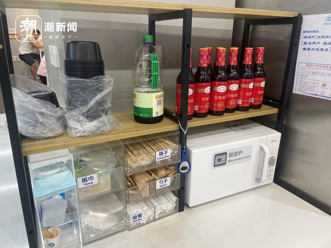 就餐区备有调味料和一次性餐具。记者 叶诗蕾 摄