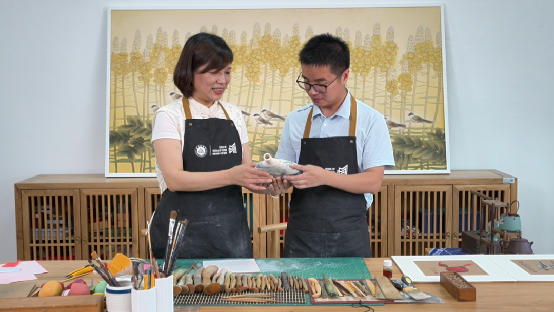 作为意大利归国华侨、首批浙江海外青年宣讲员胡植柱先生结合自身经历,带着宝箱开启了本次的温州技艺寻根之旅,他分享了温州非遗在海外的认知度及其作为文化桥梁的意义,也亲自动手制作了漆器瓯塑的作品。他的视角为传统技艺增添了当代侨青传承的生动注脚。
