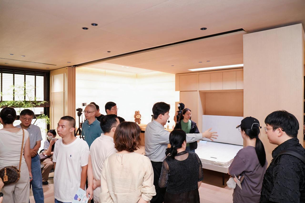 由浙江建设职业技术学院、省建科院、绿城房产、滨江房产合力打造的“生活美学家”样板间吸引了不少观众。该空间不仅实现了全屋智能语音唤醒功能,更在选材上独具匠心——柜体采用兔宝宝桉芯板,以纯桉木基材搭配“除醛抗菌”专利技术,持续守护室内空气健康。此外,样板间还打造出16%的超大收纳空间,结合灵活多变的设计,轻松适应多种生活场景,为“生活美学家”居住体验提供了高品质解决方案。