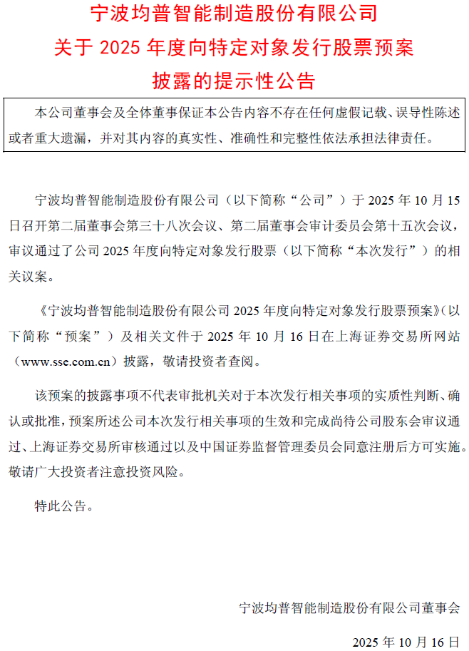 10月16日,宁波均普智能制造股份有限公司(股票代码:688306,简称“均普智能”)发布重磅融资公告,宣布拟向特定对象发行股票募集资金不超过11.6亿元,重点投向智能机器人研发及产业化等领域。