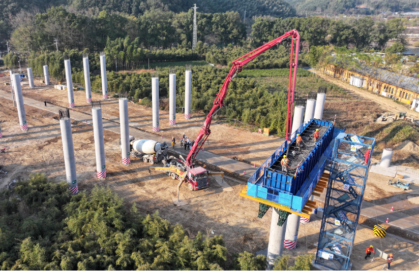 当天,浙江交通集团建设的甬金衢上高速衢州段现场一派忙碌景象,全线2200余名建设者在各个作业面有序施工。其中,控制性节点工程江山港特大桥,是国内在建高速公路跨度最大的顶推施工网状系杆钢箱拱桥,其主墩施工正在全力推进,现场钻机轰鸣。