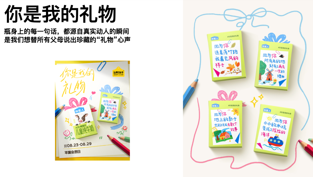 要了解“认养一头牛”作为牛奶品牌在牛奶红海市场中脱颖而出的秘决,非标商业角度恰是解读的钥匙。邱欢老师从“差异化的设计链路”,包括:把奶牛养得好转化为用户可感知、可参与、可信任的全链路体验;通过年度会员日、音乐节、告白瓶等,让用户与用户之间产生更好的沟通与链接;产品造型设计上如:吨吨瓶的开发、更适合儿童的使用场景与卖场销售场景等手法。分享了差异化设计,让好产品脱颖而出的秘诀。