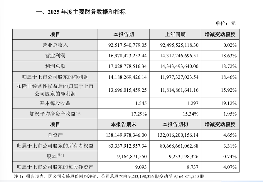 “浙股一哥”发布业绩快报,净利同比增长18.46%
