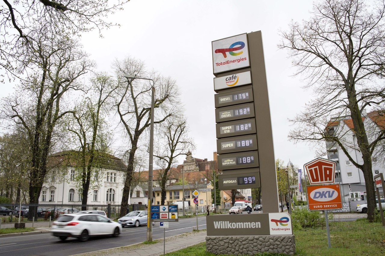 2024年4月3日,汽车驶过德国首都柏林的一家加油站。新华社记者 任鹏飞 摄