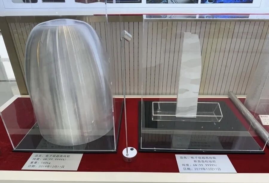 同创普润纯度达到6N的电子级超高纯铝锭。企业供图