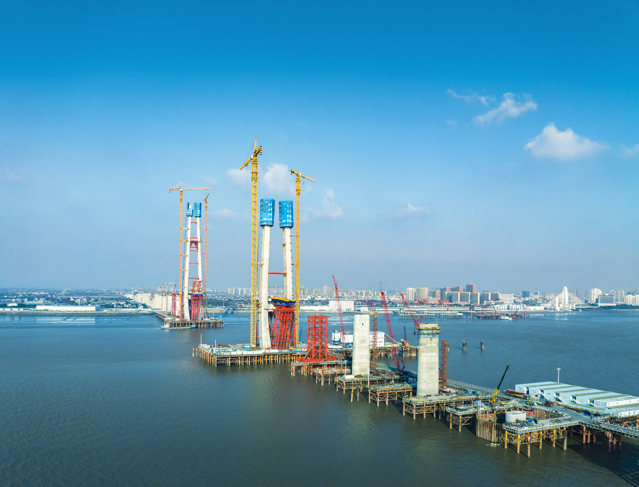 杭州湾跨海铁路大桥主塔拔节生长,东方枢纽上海东站正进行屋盖钢结构拼装……新春伊始,“轨道上的长三角”建设现场热潮涌动。
