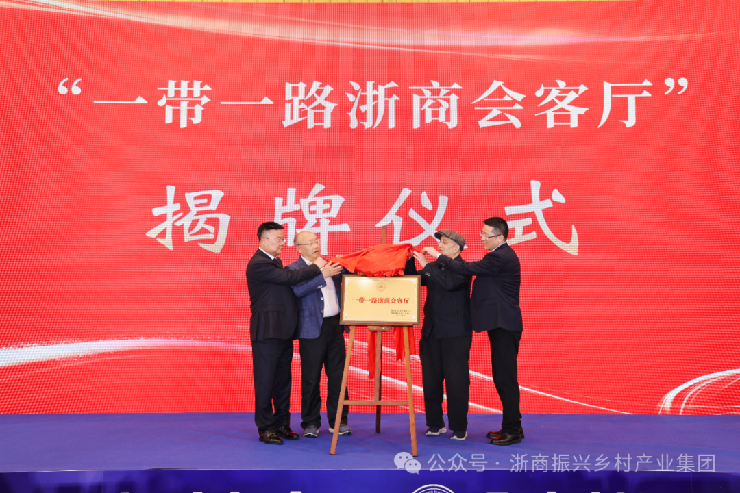 会议举行了“一带一路浙商会客厅”揭牌仪式,浙江省人民政府原副省长、第九届省政协常务副主席龙安定,浙江省十二届政协副主席周国辉,浙江省浙商经济发展中心主任郑仁春,一带一路大使会客厅国际服务中心理事长、浙商国际文化交流中心主任华建华共同上台揭牌。