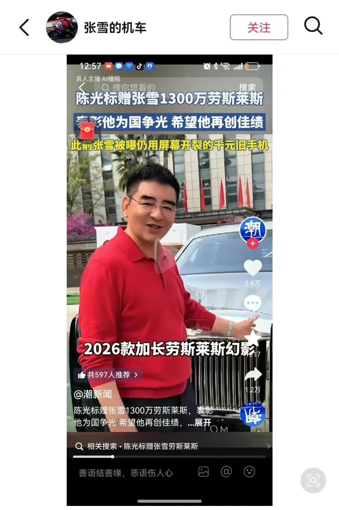 陈光标欲赠予张雪千万劳斯莱斯,初衷是被张雪“从一无所有撑起中国摩托车希望”的精神所感动。张雪回应“收了转卖捐款给嫣然天使”,则展现了另一种格局。