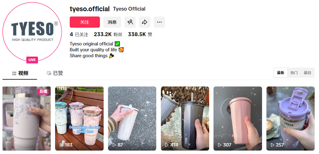针对一季度的海外风口,夏红巧同样强调,中式生活潮流带来的流量红利是阶段性的,品牌想要做得大走得远,核心还是本土化运营与产品适配。“海外用户买我们的杯子,不仅只是为了‘喝热水’,主要是为了保冷、便携、好看,适配他们喝咖啡、户外出行、日常通勤的真实需求。文化热度能帮我们破圈,但留住用户靠的是好用、耐用、符合当地习惯。”事实上,真正让Tyeso走红的,是一套成熟的TikTok本土化运营打法:把社交平台当成产品放大器。