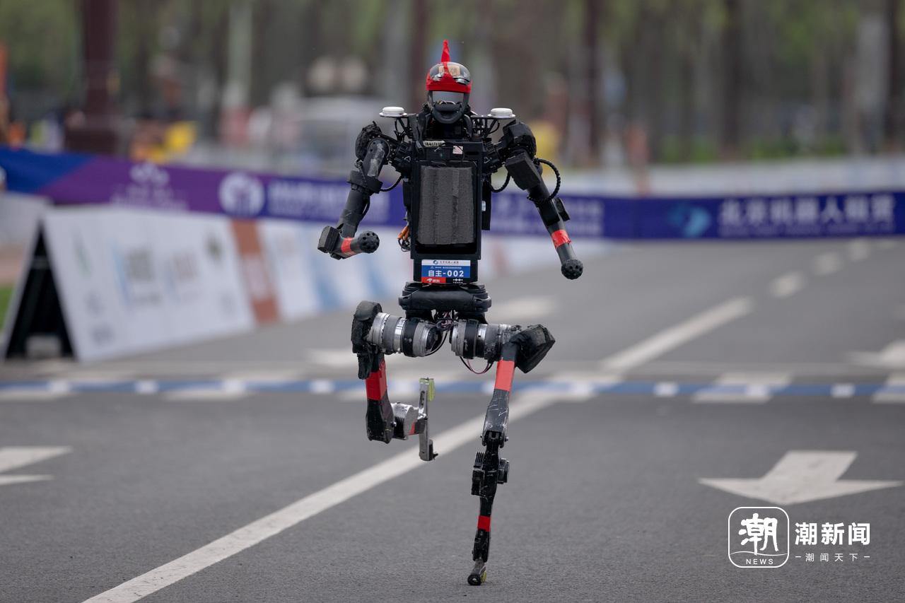 齐天大圣队自主导航机器人“闪电”以50分26秒的净时成绩夺冠,打破人类半马纪录。潮新闻记者 倪雁强 摄